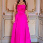 🔥 Versão Curta com Camadas – Moderna e jovial, esta versão revela uma saia curta com sobreposição de babados, criando um look sofisticado mas descontraído, ideal para ocasiões ao ar livre, cocktails ou celebrações mais informais.
