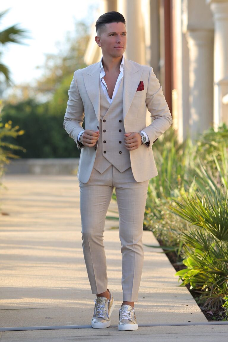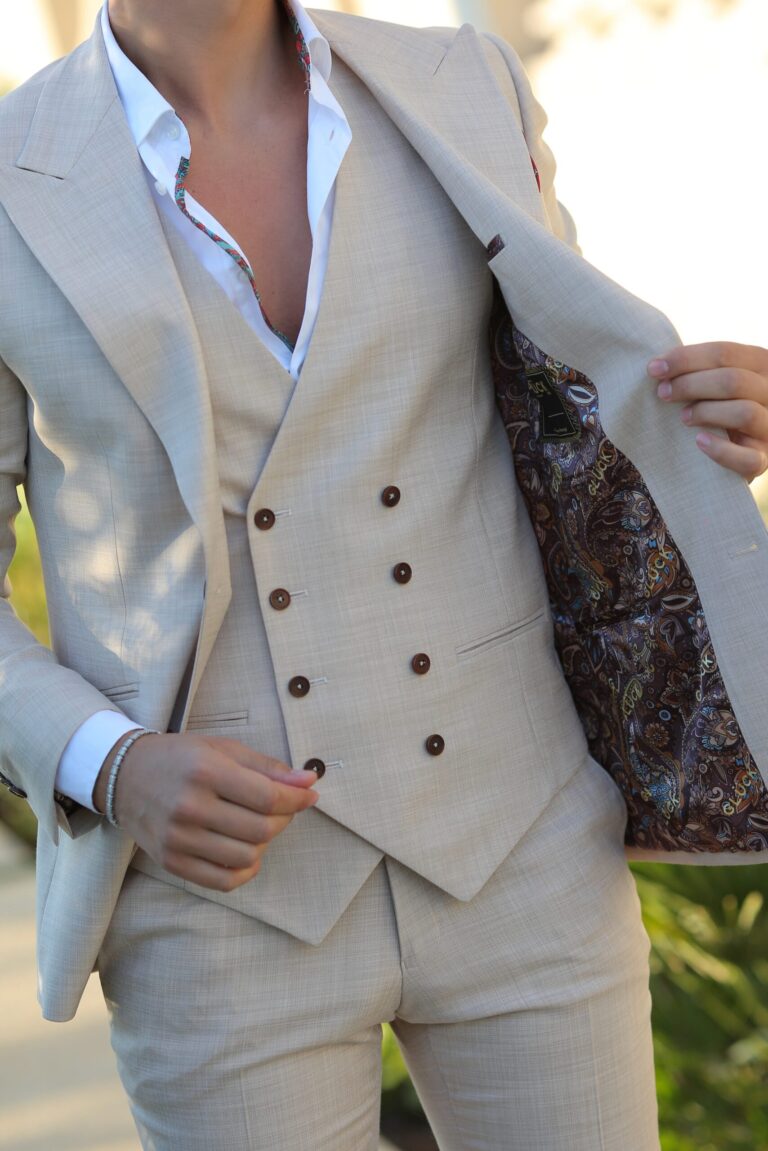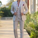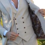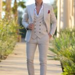 Fato de homem slim fit com elastano. Blazer de 2 botões, com lapela de 11 cm em bico com pic exterior de 5mm e forrada a feltro na parte junto ao pescoço. Forro completo acetinado, para maior conforto.Duas Aberturas traseiras. Calças com cós reforçado e presilhas. Com fecho-éclair, botões e colchete ocultos. Bolsos laterais. Calças com forro até ao joelho, para maior conforto.