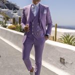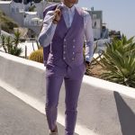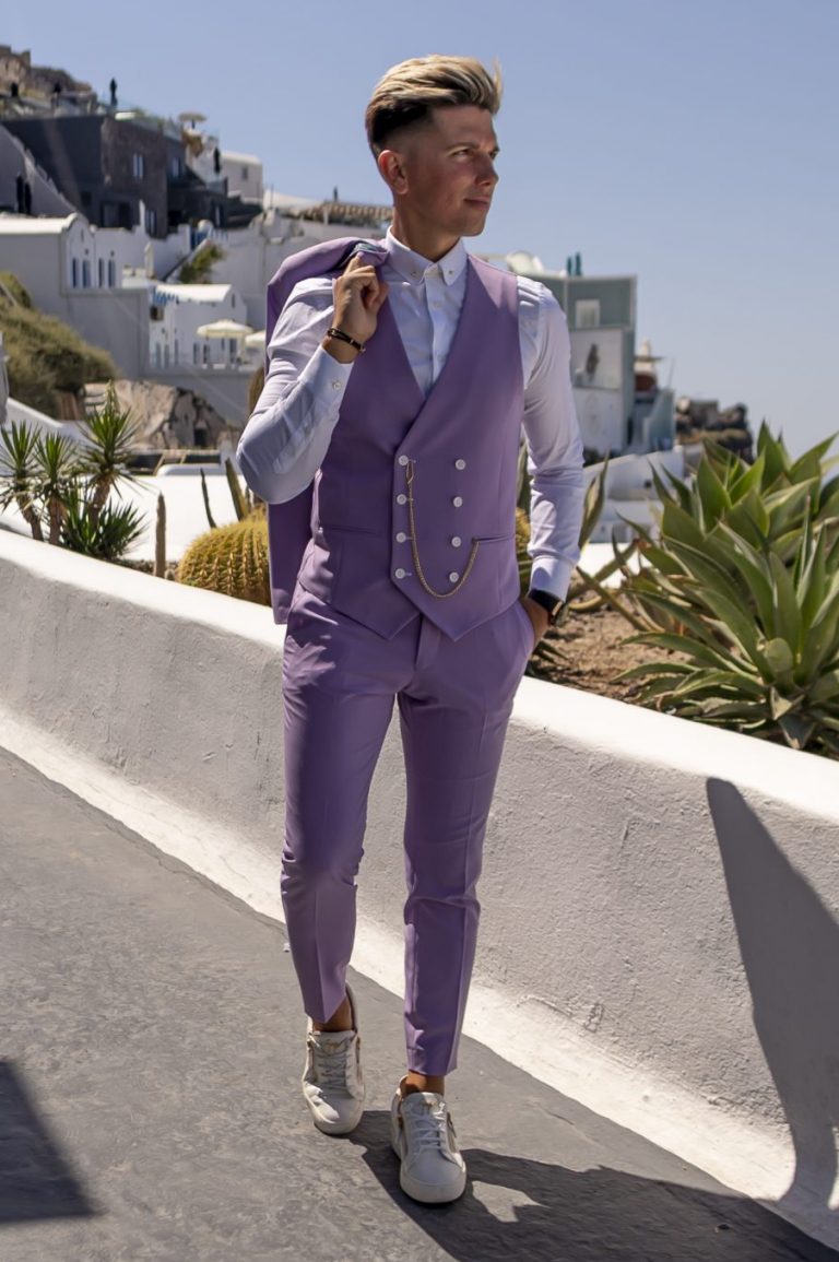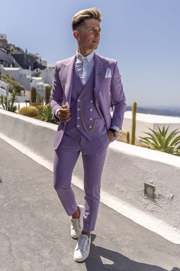 Fato de homem slim fit com elastano. Blazer de 2 botões, com lapela de 11 cm em bico com pic exterior de 5mm e forrada a feltro na parte junto ao pescoço. Forro completo acetinado, para maior conforto. Com 4 bolsos exteriores, 2 de um lado e 1 do outro inclinados, 1 de peito, 3 interiores e apoio para caneta. Uma Abertura traseira. Calças com cós reforçado e presilhas. Com fecho-éclair, botões e colchete ocultos. Bolsos laterais. Calças com forro até ao joelho, para maior conforto. Confecionado em Portugal pela GLÜCK LBN.