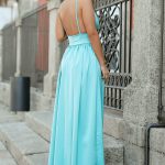 Maravilhoso vestido liso com ligeiro brilho inerente ao próprio tecido.