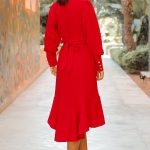 Tem um cinto que pode ser ajustado de modo a acentuar mais ou menos a cintura.